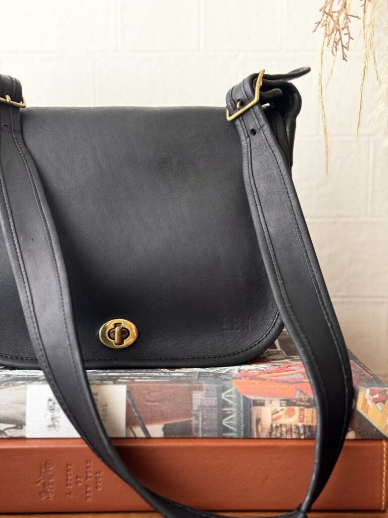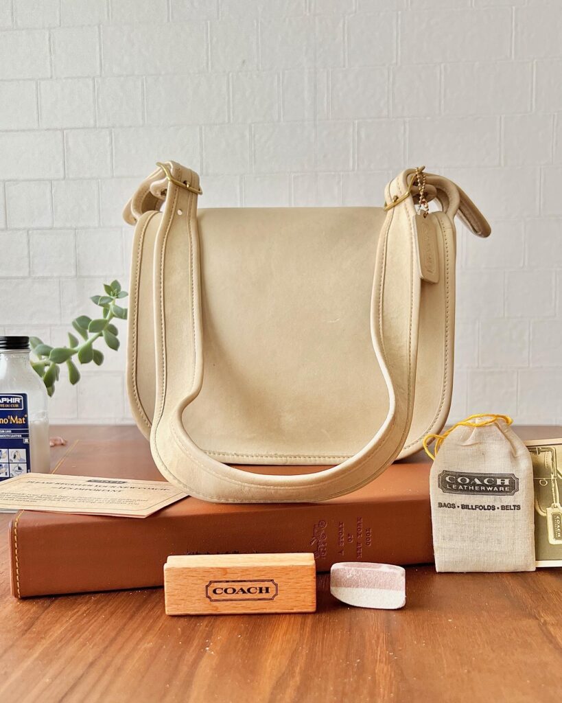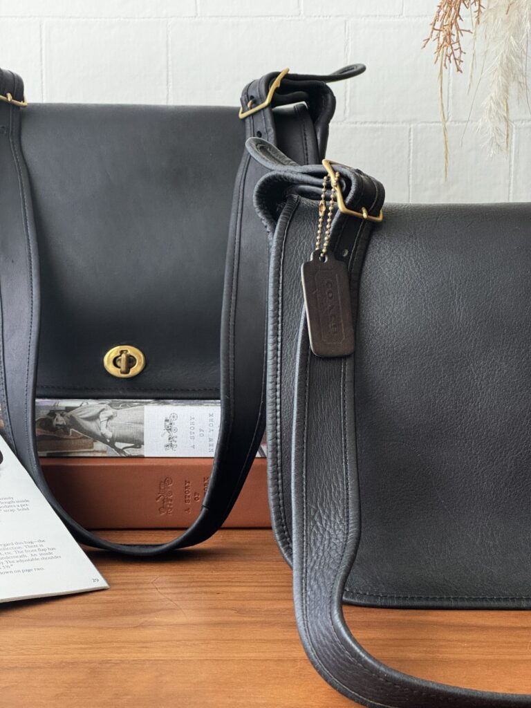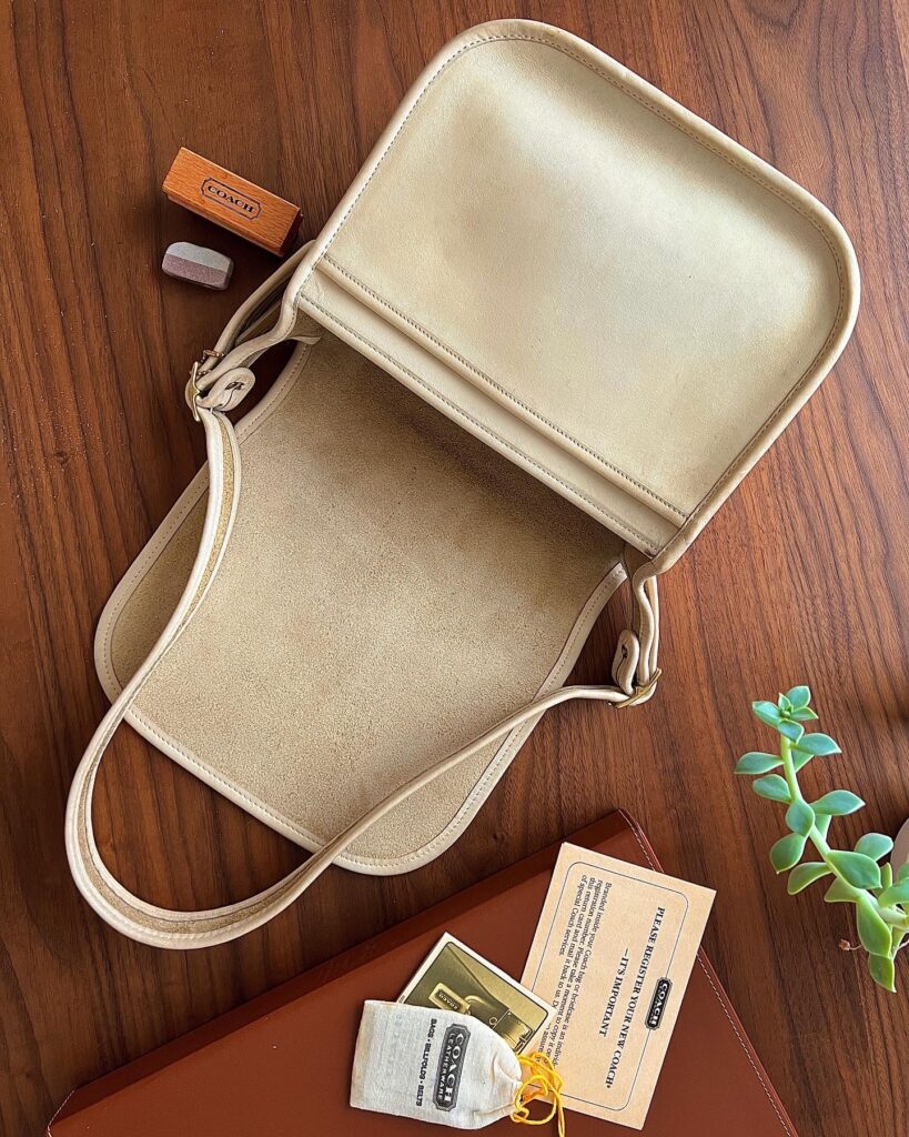 15年以上前にコーチが初めて発表したオリジナルバッグ。金具を最小限に抑えた、シンプルな裏地なしのポーチです。内側にはジッパー付きのコンパートメント、フラップの下にはコンパートメントがあります。調節用のバックルは真鍮製です。