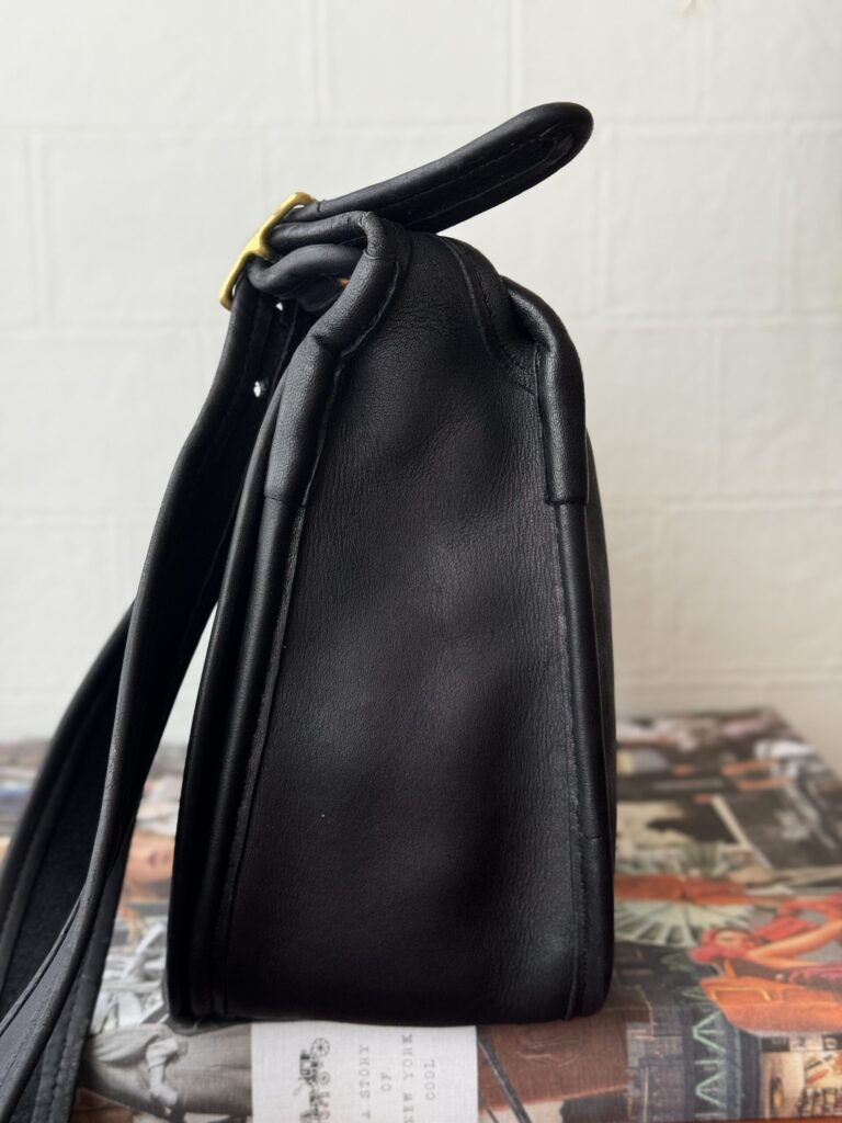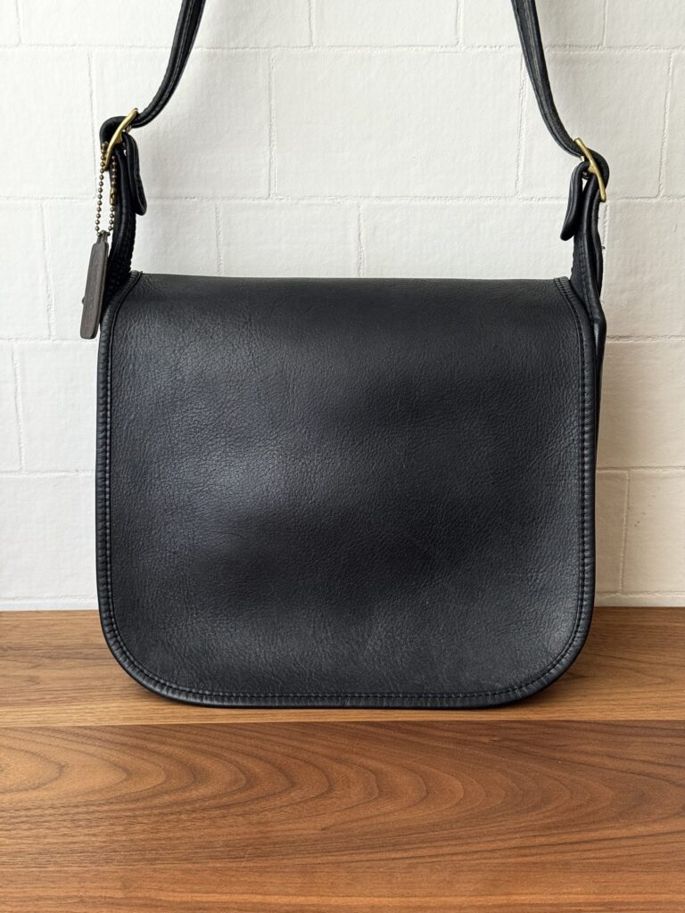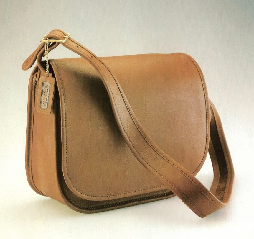 The original Coach bag, first introduced by us over fifteen years ago. Simplest of unlined pouches with a minimum of hardware. Inside zipper compartment and an extra compartment under the flap. Adjusting buckles are solid brass.