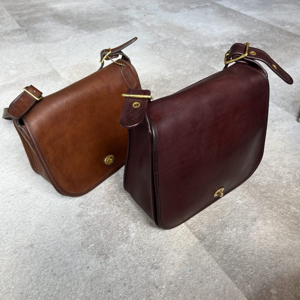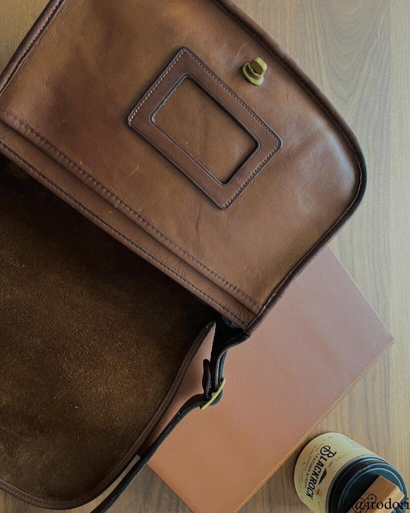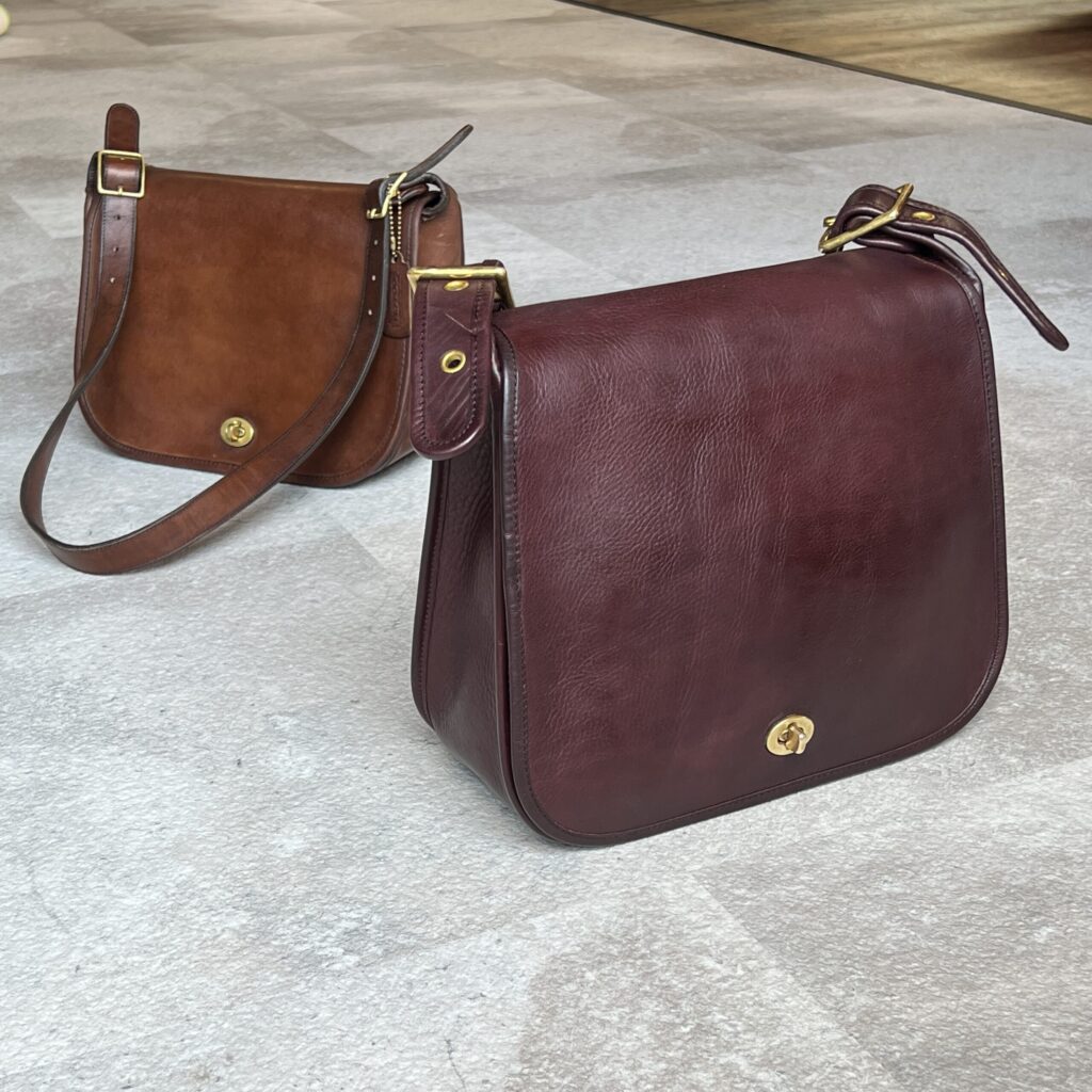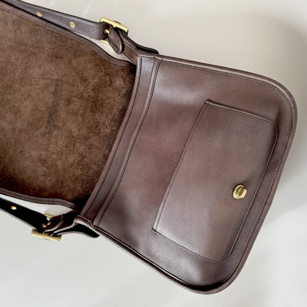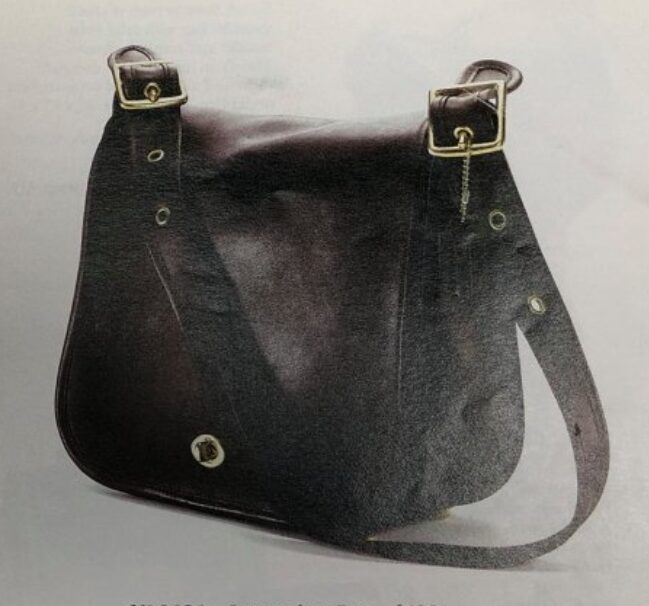 Regulation flight attendant’s shoulder bag with extra large carrying capacity. Handy pocket right under the flap and a zipper compartment inside. The stirrup buckles and the industrial turnlock are solid brass. Brass “feet” protect the bottom from scuffing.