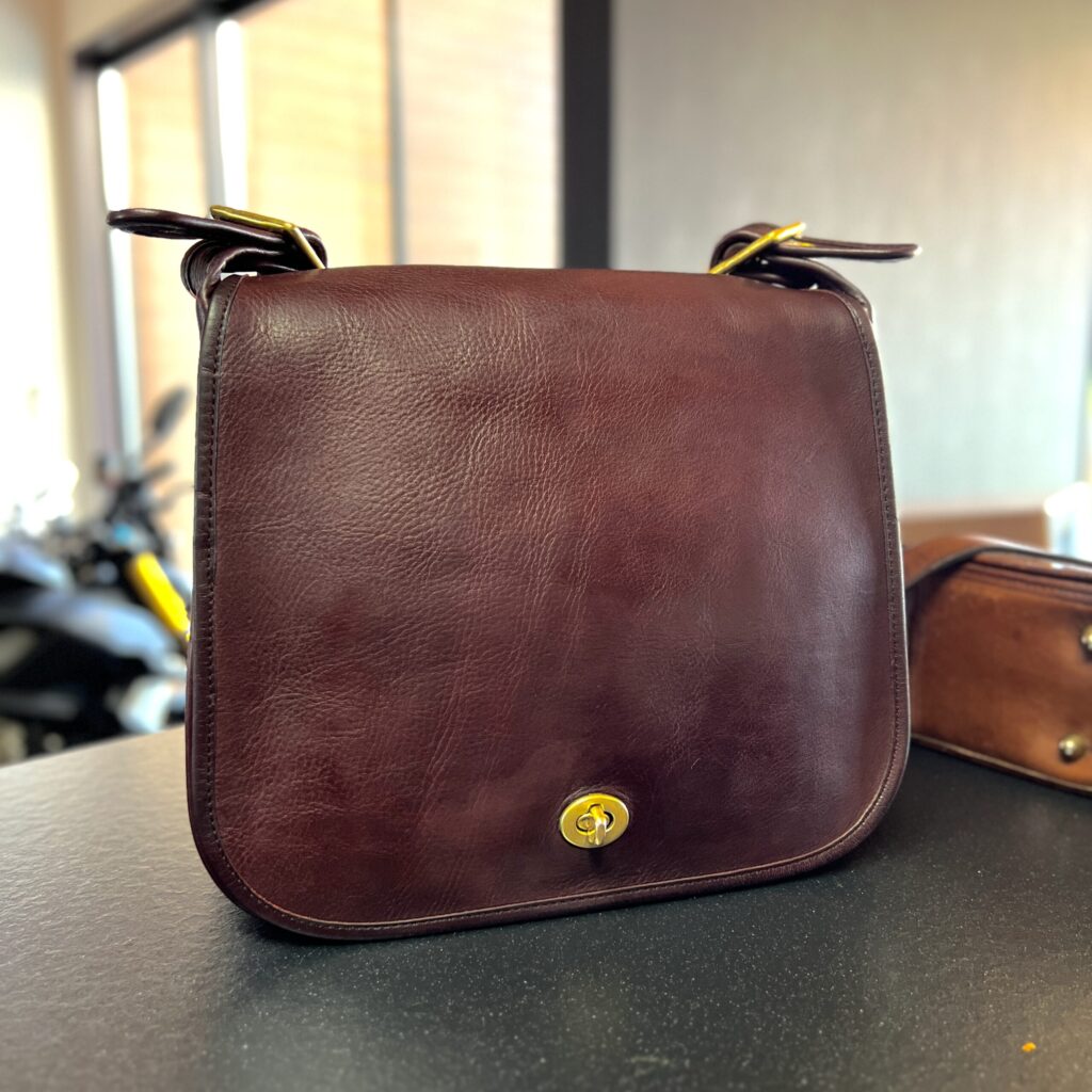 規定サイズのフライトアテンダント用ショルダーバッグ。大容量の収納力。フラップのすぐ下に便利なポケット、内側にはジッパー付きのコンパートメント付き。スターラップバックルとインダストリアルターンロックは真鍮製。真鍮製の脚が底の擦り傷を防ぎます。