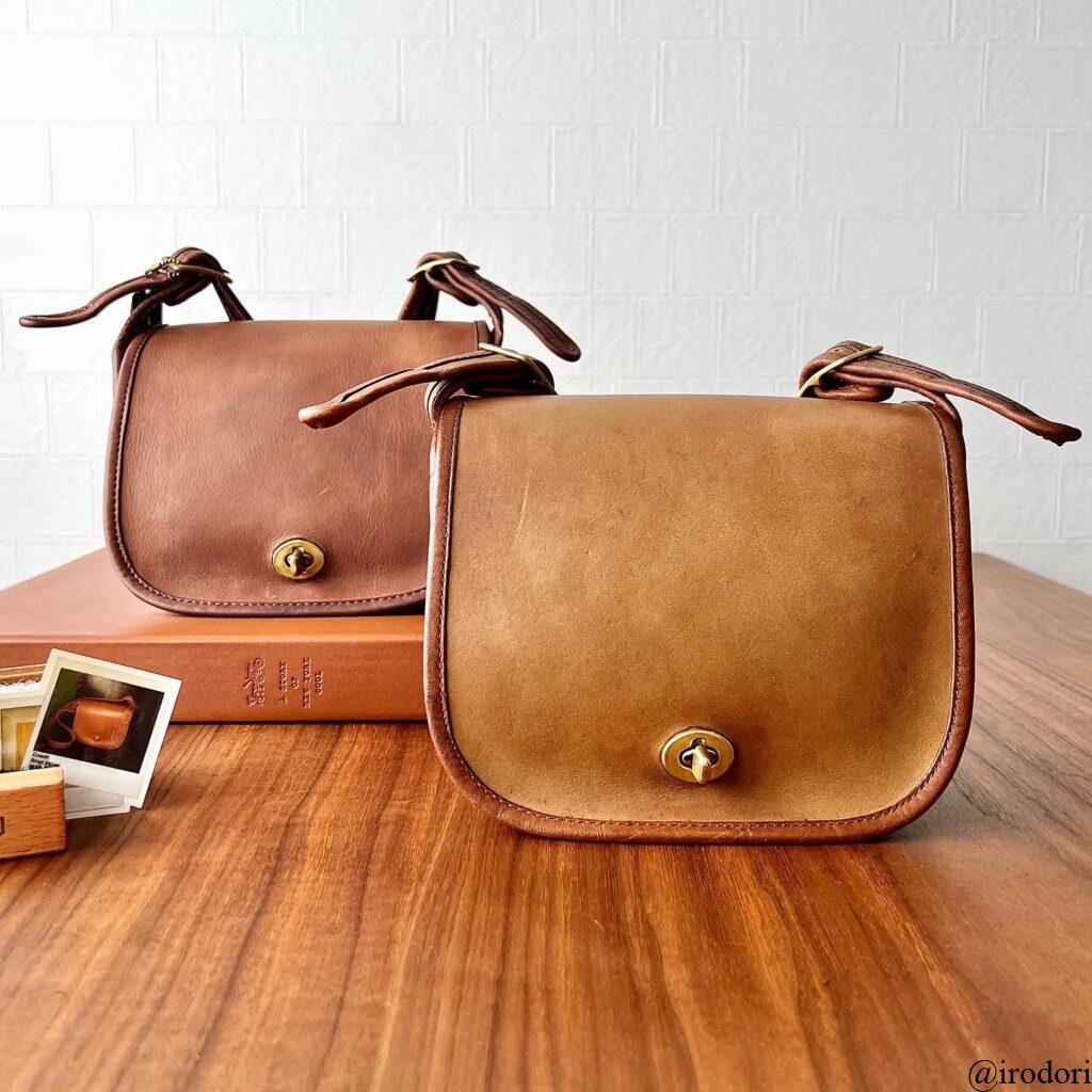 Scaled-down version of classic shoulder bag with solid brass buckles and turnlock closure. There’s an inside zipper compartment and an additional compartment under flap.