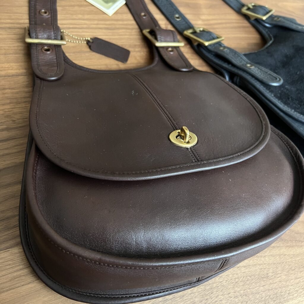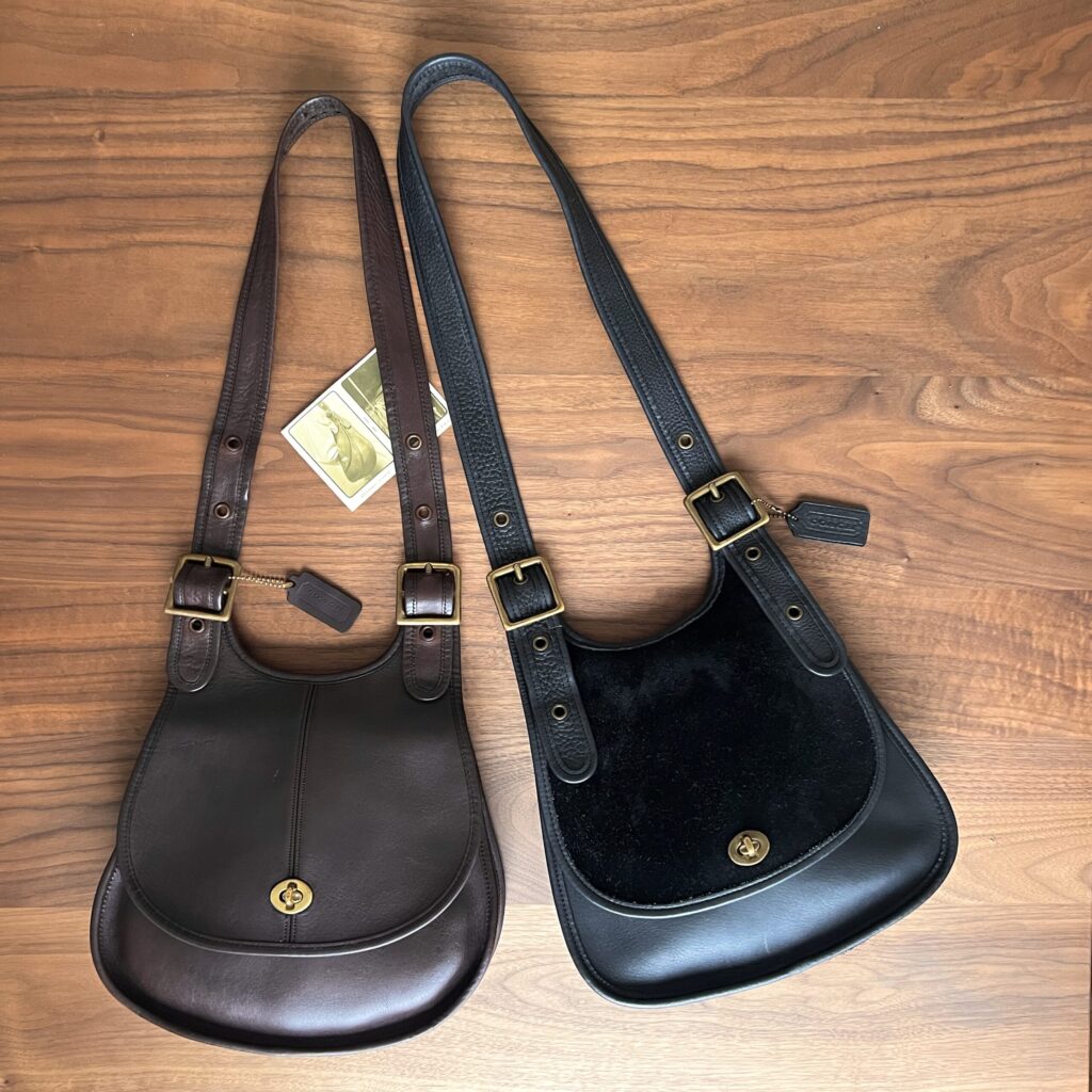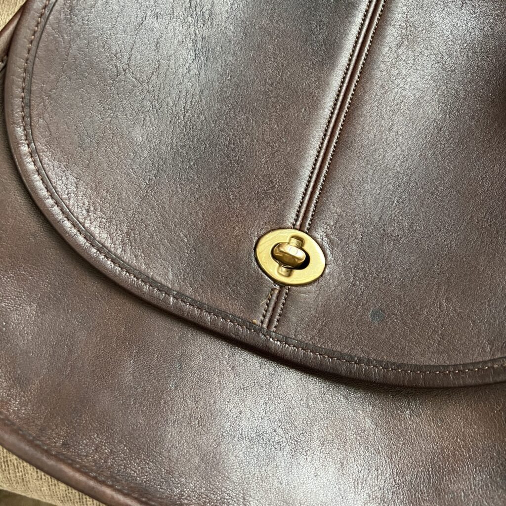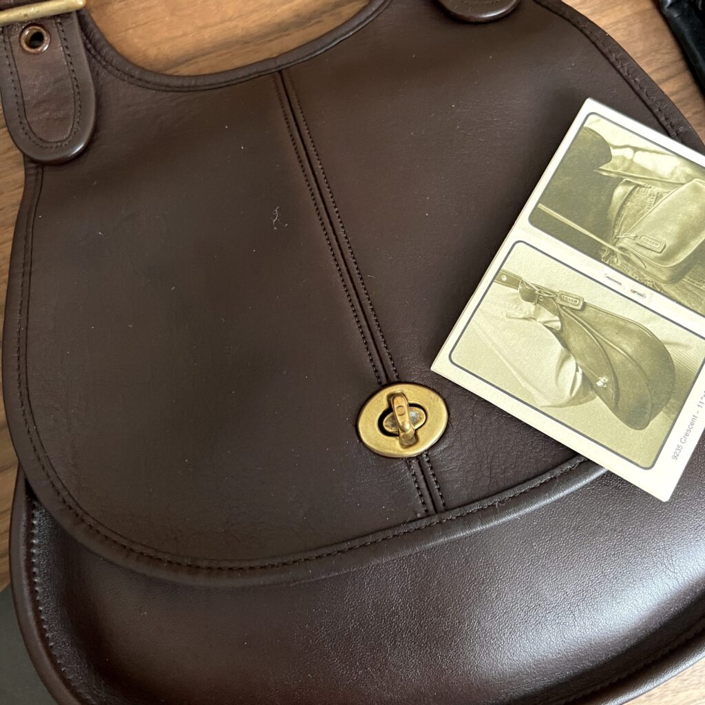 This body hugging Coach® Bag is especially contoured for a snug fit. Shoulder strap is 1¼” wide and adjusts with a pair of matched, solid brass stirrup buckles.