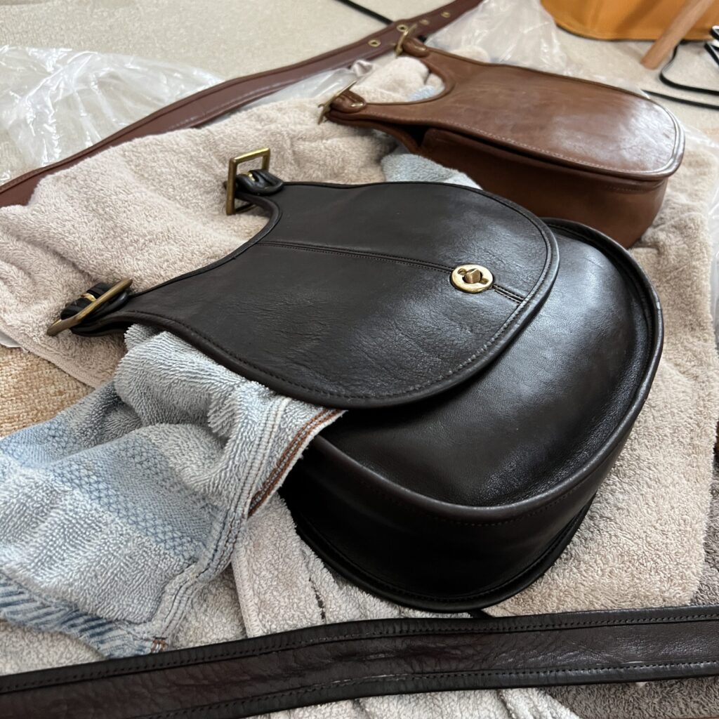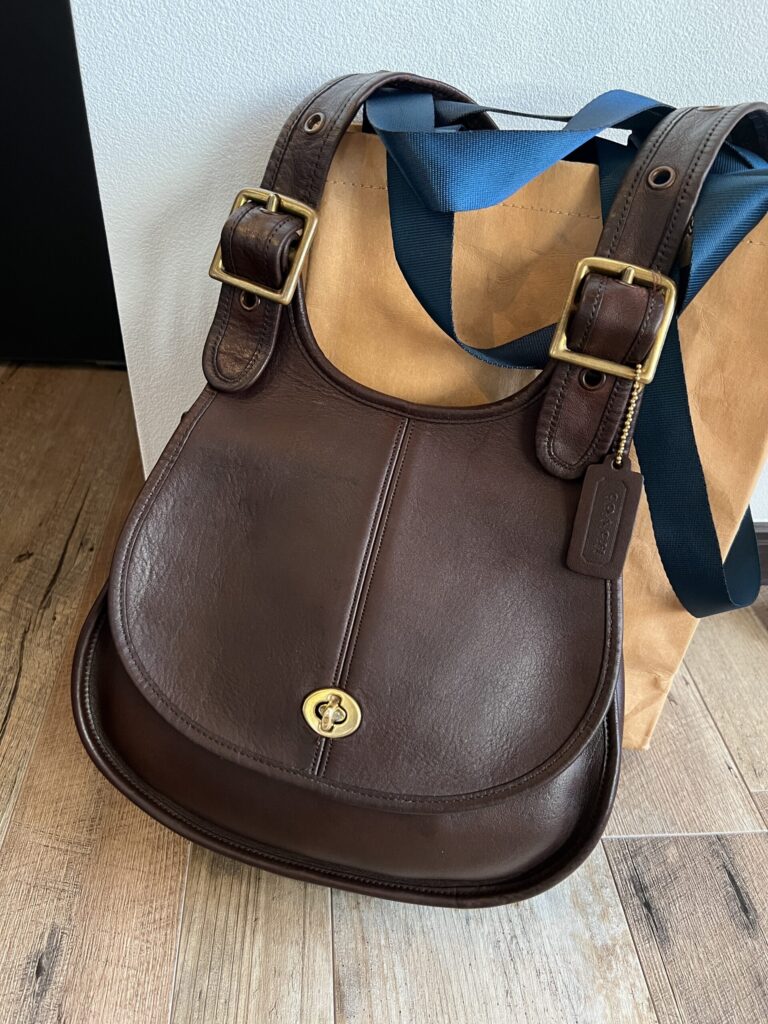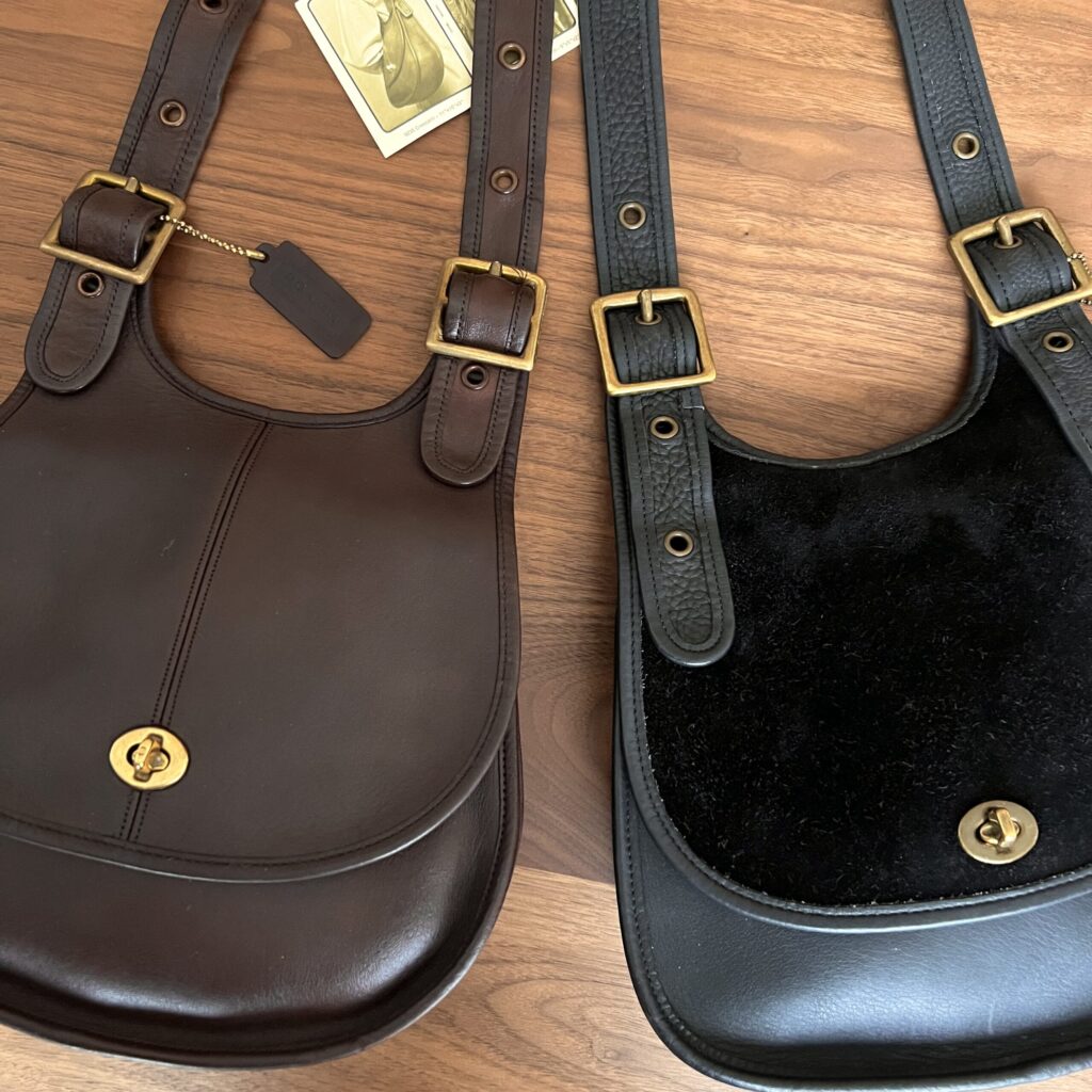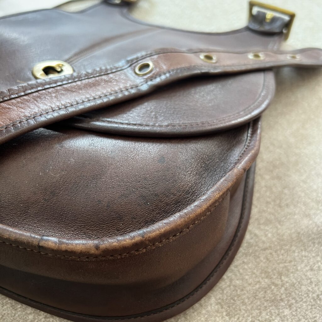 This body hugging Coach® Bag is especially contoured for a snug fit. Shoulder strap is 1¼” wide and adjusts with a pair of matched, solid brass stirrup buckles.