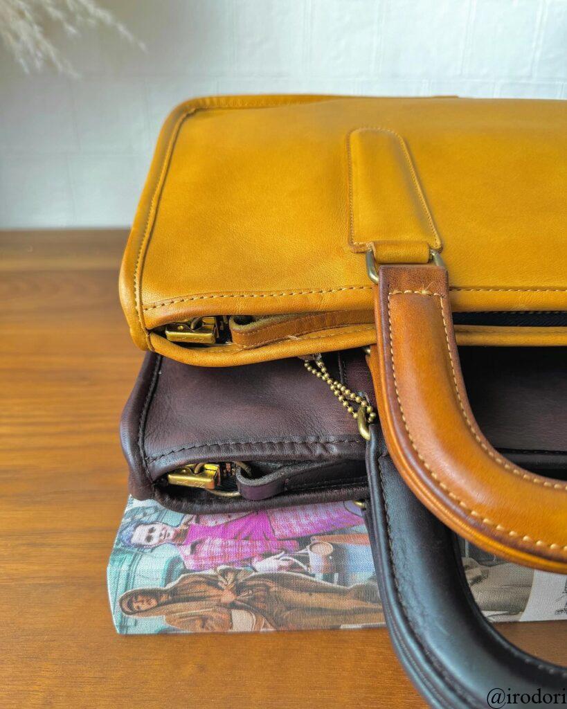 片方はブリーフケースより小さく、もう片方はクラッチバッグより大きいです。どちらも内ポケットがあり、真鍮製の工業用ジッパーでしっかりと閉じられます。