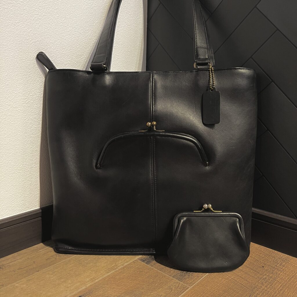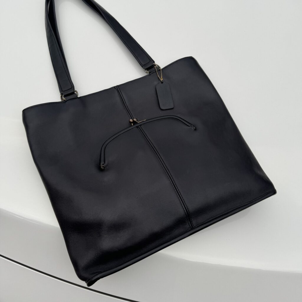 ミドル丈のストラップが付いたクローズドトートは、肩掛けにも肩から外してもお使いいただけます。外側の小銭入れはレザー張りで、裏地はレザーです。内側には大きなポケットが付いています。真鍮製のインダストリアルジッパー。
