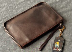 The Coach Bag that started a look. Soft, perfectly proportioned clutch swings of the hip. Detachable double strand shoulder strap with solid brass dog-leash hardware. A casual bag by day, a simple, elegant bag at night. Solid brass industrial zipper with wrist strap pull.