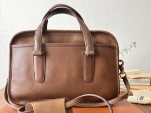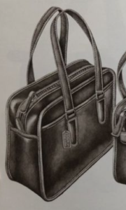 This roomy travel bag has mid length carrying straps that fit over the shoulder. Two outside compartments and an inside pocket.